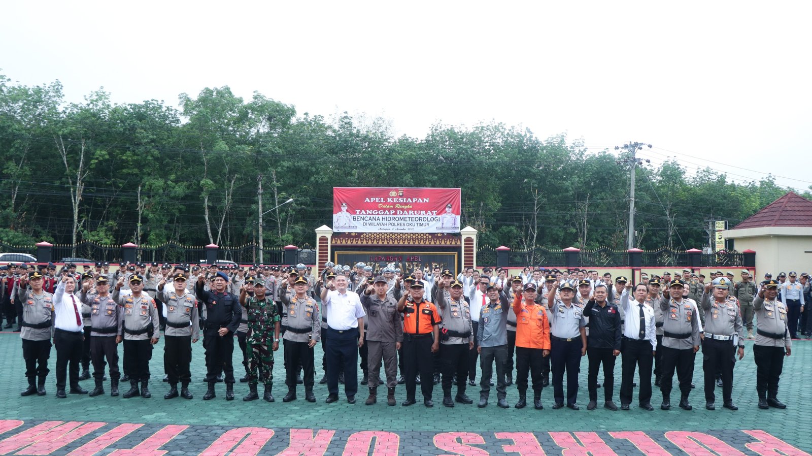 Memingkatnya curah hujan tersebut berpotensi mengakibatkan bencana Hidrometeorologi seperti banjir,tanah longsor, angin puting beliung. Kegiatan berlangsung Lapangan Apel Satya Haprabu Polres OKU Timur.