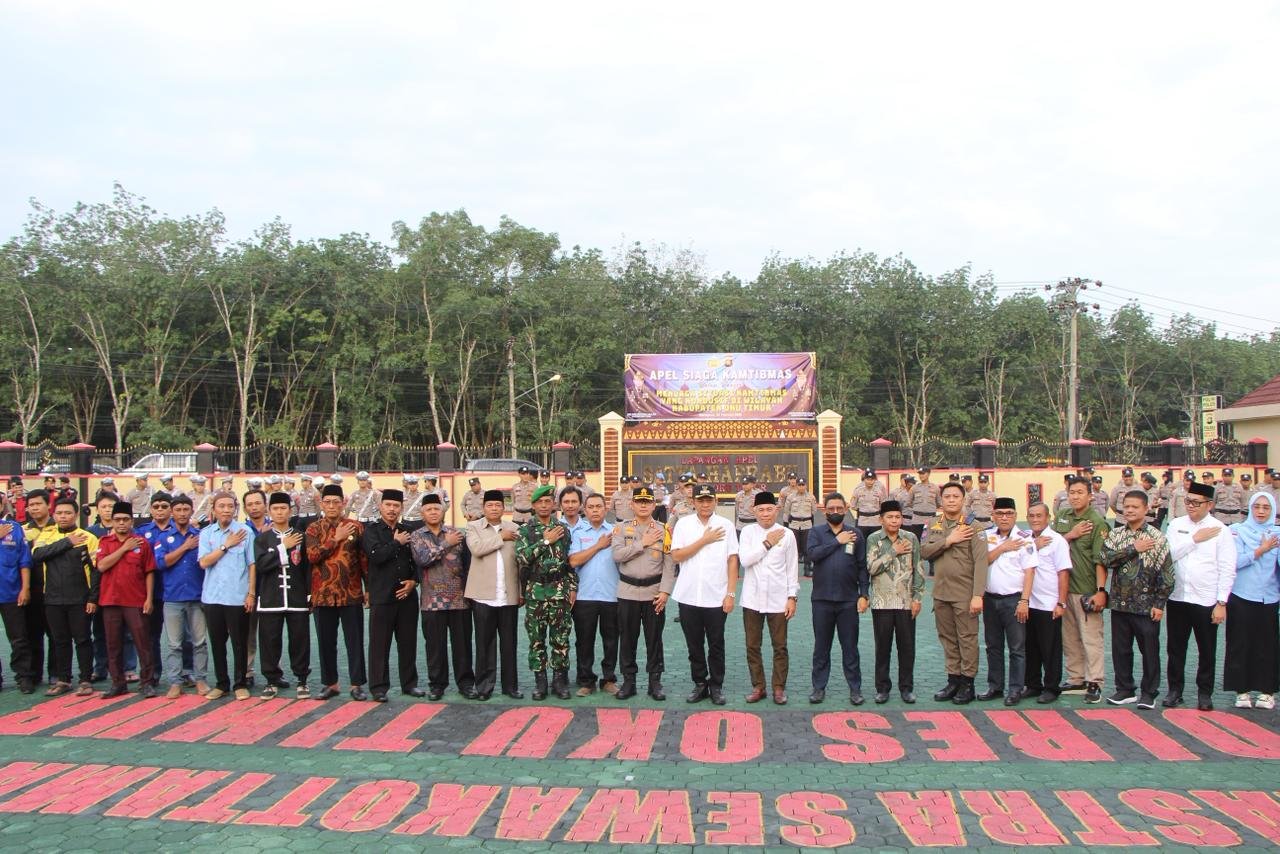 Kegiatan Apel Siaga Kamtibmas dipimpin langsung oleh Kapolres OKU Timur,AKBP Adik Listiyono S.I. K., M.H.bersma Bupati OKU Timur, Ir.H. Lanosin, Dandim 0403 OKU diwakili oleh Pabung MAYOR Arm. Efendi Tambulon,