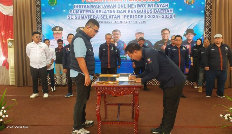 Musi Banyuasin. MEDIAMASA Pengurus Ikatan Wartawan Online (IWO) Wilayah Sumatera Selatan dan pengurus daerah se-Sumsel resmi dilantik untuk periode 2025–2030. Bertempat di Pendopo Griya Serasan Sekate, Musi Banyuasin, Jumat (17/4/2026)
